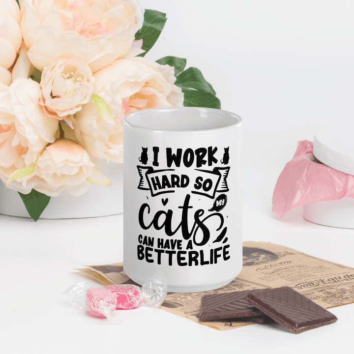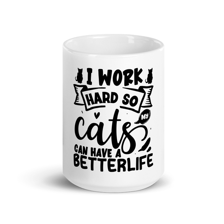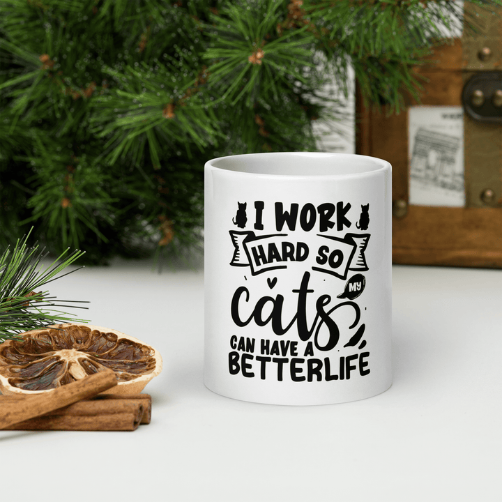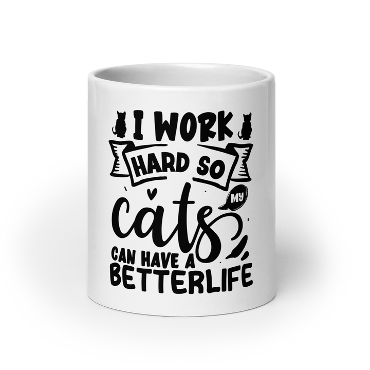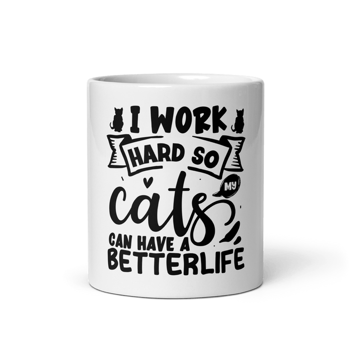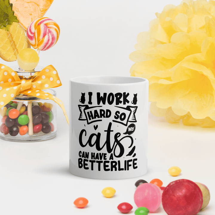Featuring the sarcastic message “I work hard so my cat can have a better life,” this ceramic mug is made for cat lovers who know who really runs the house. Whether you're sipping your morning brew or winding down with tea, this glossy, durable mug adds a fun touch of humor to your day.